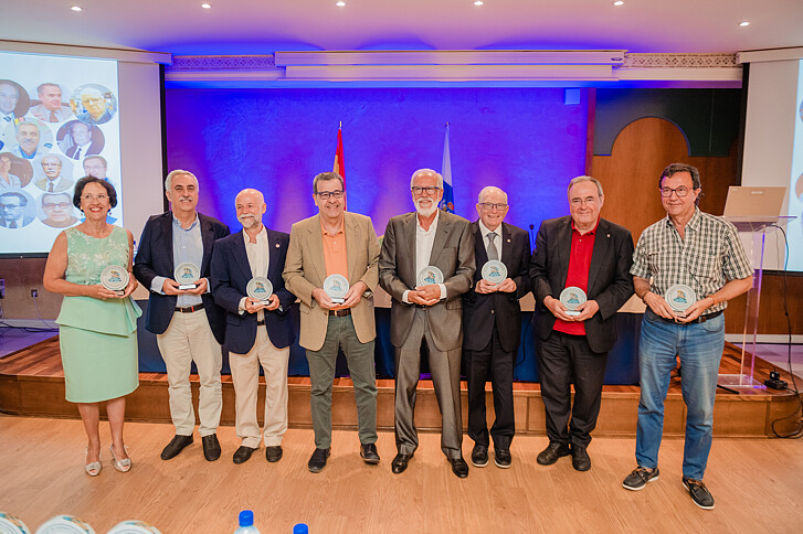 Seguidamente y en un acto cargado de mucha emotividad se entregaron por parte de los presidentes Dr. Luis Ortigosa del Castillo y Dr. Luis Peña Quintana a los expresidentes de ambas Sociedades (presentes, ausentes o fallecidos) la distinción en un bonito emblema conmemorativo de la 50º Reunión y sus períodos de mandato.